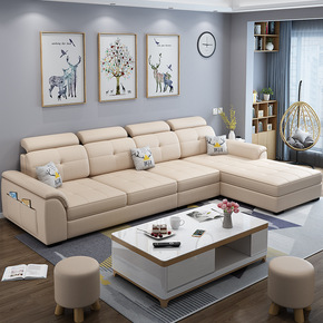 新款北欧转角科技布乳胶布艺沙发 大小户型客厅组合整...
