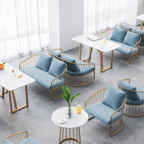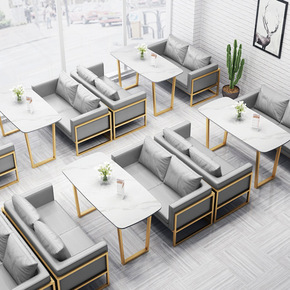 北欧轻奢餐厅沙发桌椅组合网红奶茶店咖啡厅休闲洽谈布...