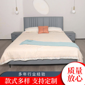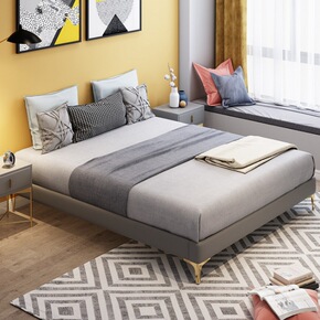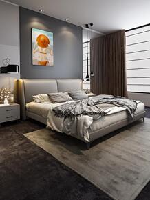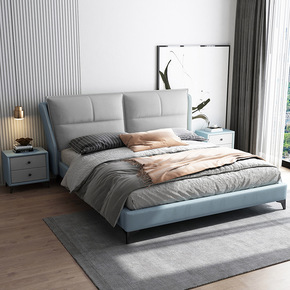 1.8*2米大床现代简约主卧真皮双人床灰色轻奢皮床...