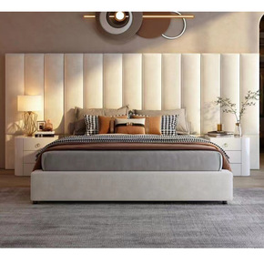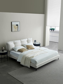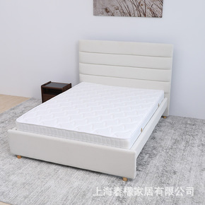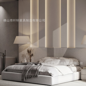 意式简约现代羽绒海绵靠背布艺软床磨砂布艺床崁入式高...