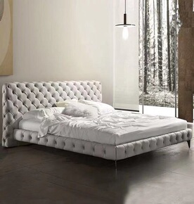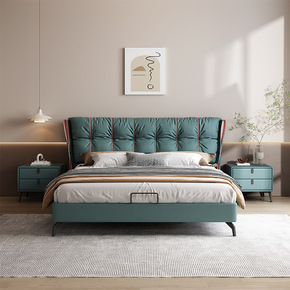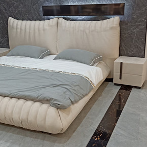 意式极简设计师女生仙女床轻奢主卧现代磨砂布艺软床...