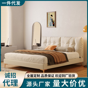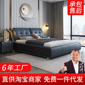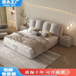 贝果牛皮床床现代轻奢卧室双人简约主卧大床婚床软包床...