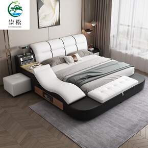 榻榻米床主卧简约现代床双人大床北欧智能按摩多功能储...