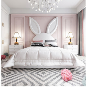 简约现代个性网红床 抖音同款兔子耳朵床 卧室卡通布...