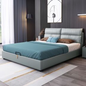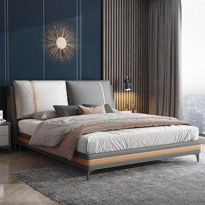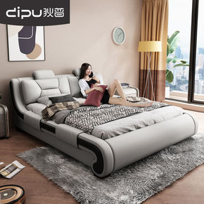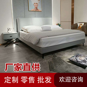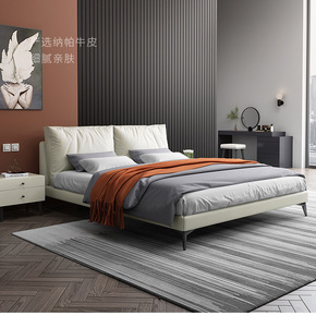 意式极简轻奢真皮床双人床皮艺床1.5米1.8米婚床...