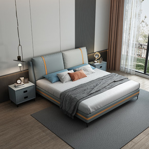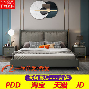 后现代简约轻奢风皮床1.5米双人主卧北欧 小户型网...