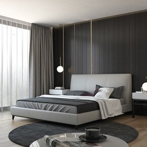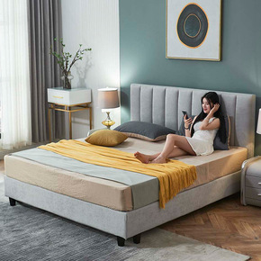 现代简约科技布床灰黑色1.8米软包靠背围边高脚主卧...