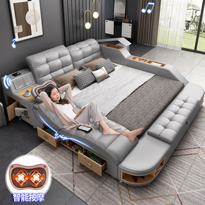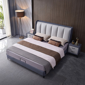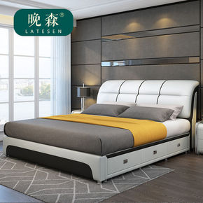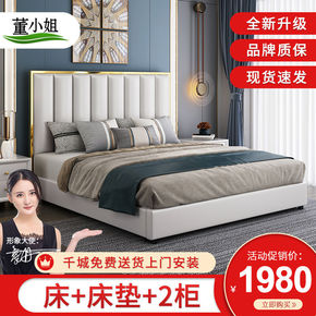 真皮双人床成人主卧1.8米实木现代简约婚床1.5米...