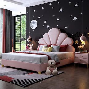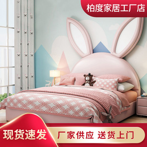 科技布床兔子耳朵床创意儿童床皮实木粉色卡通公主床网...