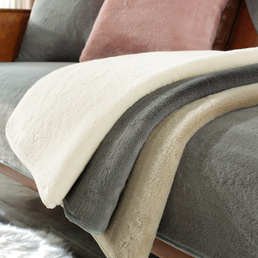 北欧简约沙发垫冬季毛绒皮草轻奢沙发坐垫靠背巾盖布防...