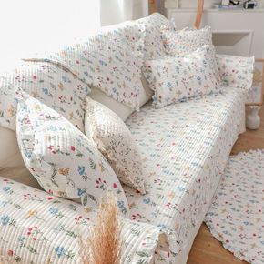厂家直供北欧小清新碎花沙发垫巾罩四季通用防滑花边坐...