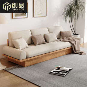 侘寂风格实木沙发日式原木风三人位沙发现代简约北欧储...