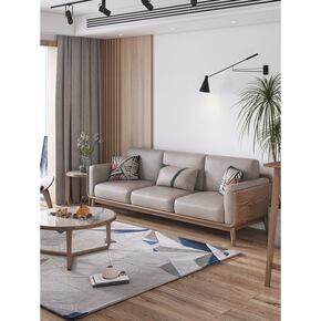 北欧实木沙发白蜡木小户型双三人位日式小客厅现代简约...