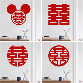 结婚喜字婚房贴纸装饰小号大红色无纺布新房布置客厅卧...