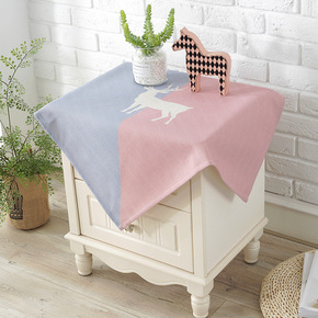 乐轩秀蓝色雏菊流苏桌布日韩田园棉麻印花餐桌布台布盖...