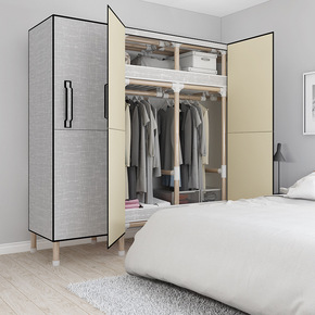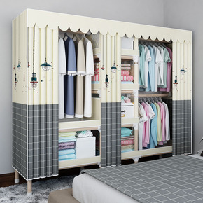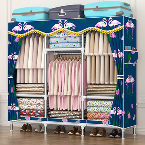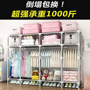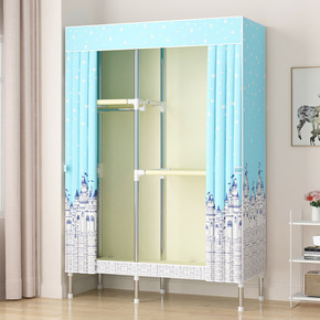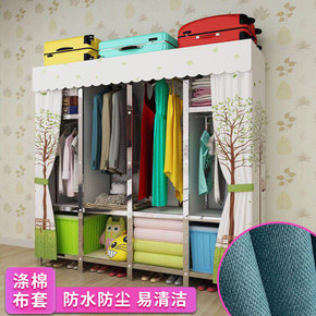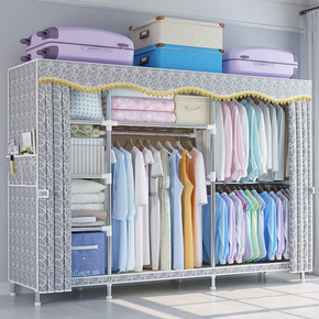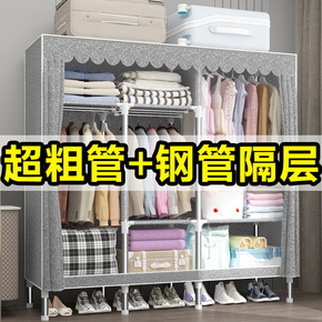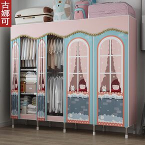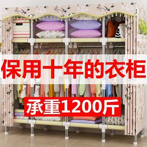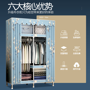 布衣柜简易衣橱大号钢管加粗加固组装单人双人卧室布罩...