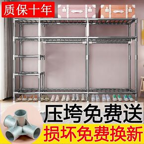 简易布衣柜钢管加粗加固全钢架加厚双人组装收纳柜家用...