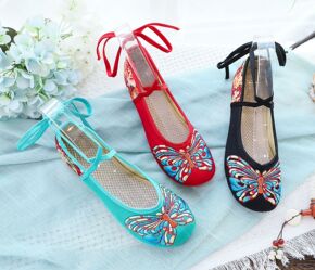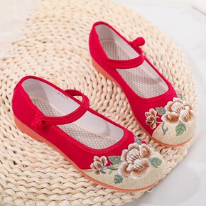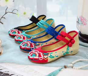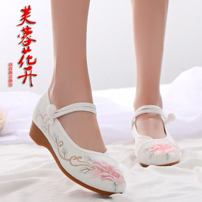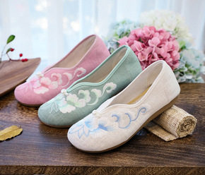 原创汉服配鞋中国风绣花布鞋女茶艺师鞋女平跟古风鞋茶...