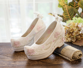 弓鞋 汉服鞋 琼花 8厘米高跟鞋 女古风古装绣花布...