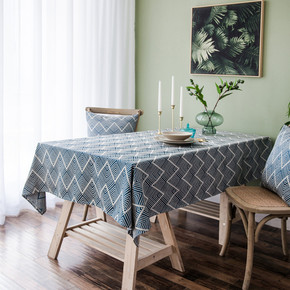 伊缦琪韵蓝色雏菊印花田园棉麻台布桌布批发家用盖巾流...