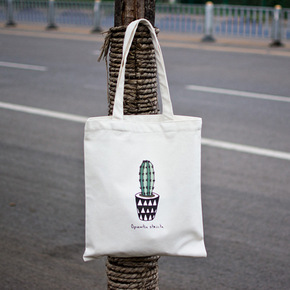 简约清新仙人掌印花加厚拉链帆布包学生书包文艺女包工...