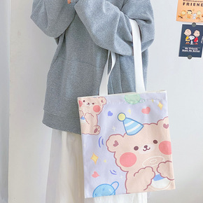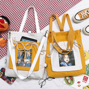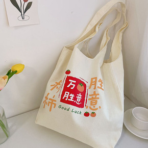LOGO日韩系艺术风格帆布包女单肩大学生上课简约可...