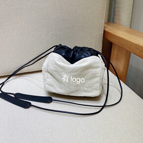 现货新款女生创意束口帆布袋 纯色简约棉布包手提抽绳...