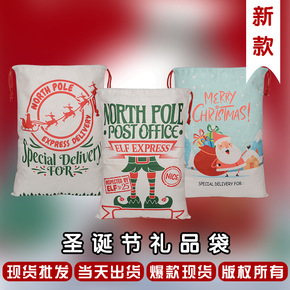 新款丝印圣诞帆布礼品袋 圣诞节糖果礼品收纳袋 圣诞...