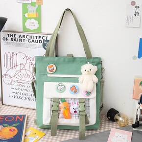 (实体店货源,不分销不代发)复古风学生帆布单肩大包...