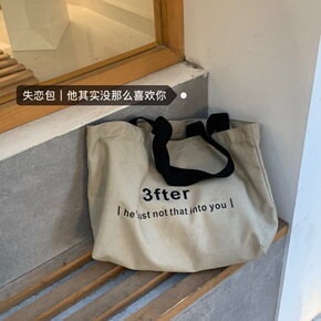 懒惰风单肩托特包女包包2021新款韩版简约帆布包大...