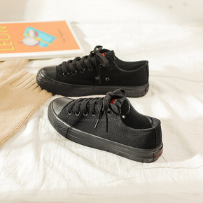 远步夏季帆布鞋女鞋韩版低帮透气全黑布鞋工鞋情侣款学...