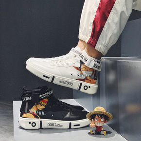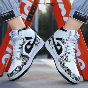 跨境大码AJ新款高帮情侣鞋韩版时尚涂鸦板鞋男鞋子学...