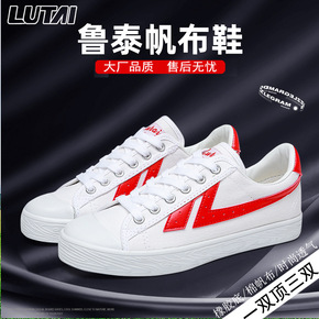 鲁泰帆布鞋秋季潮流学生鞋情侣百搭鞋大码透气小白鞋防...