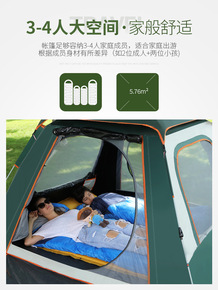 户外露营自动速开家庭3-4人帐篷 防暴雨抗紫外线沙...