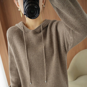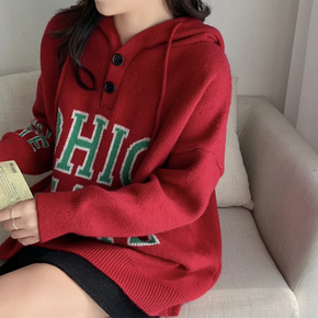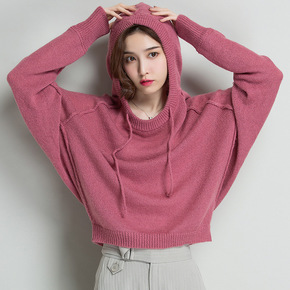2020女针织衫连帽卫衣套头毛衣蝙蝠衫宽松欧美大码...