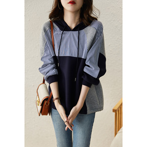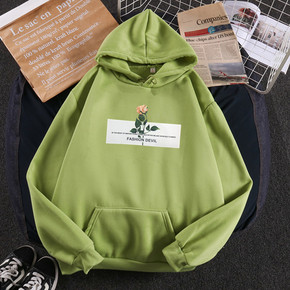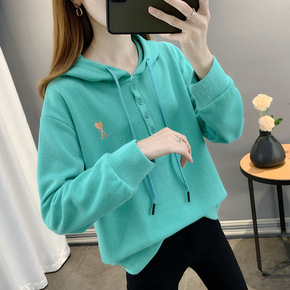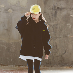 加绒连帽日系拼接卫衣女2021新款女装韩版长袖宽松...
