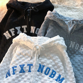 跨境2021亚马逊秋冬新款女装 网格字母长袖连帽运...