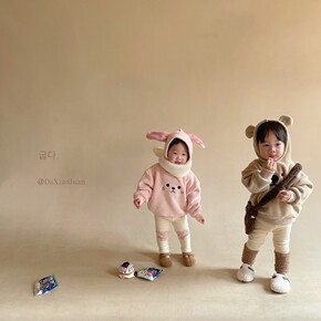 连帽女童韩版百搭兔子抓绒卫衣秋冬季外贸卡通套头儿童...