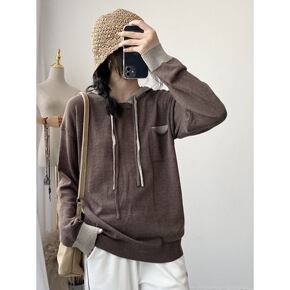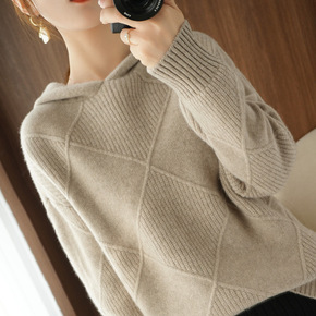 连帽羊绒衫女帽衫带帽针织打底衫戴帽子的羊毛衫毛衣宽...