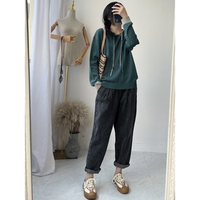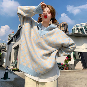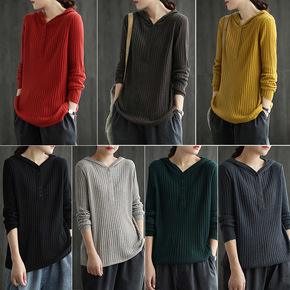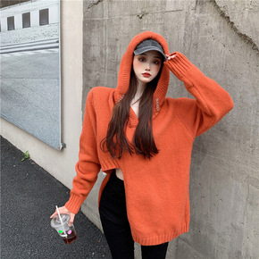 20182#连帽针织衫女春秋宽松套头长袖上衣休闲外...