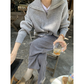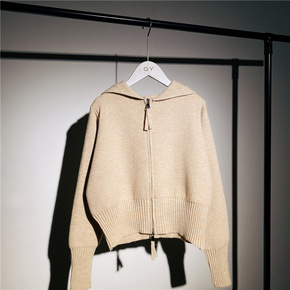 小个子设计感双开头拉链连帽毛衣开衫女秋装新款短款针...