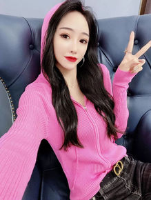 2021秋冬新款女士连帽V领套头毛衣渐变色马海韩版...