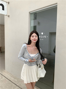 假两件连帽卫衣春秋新款女套头毛衣拼接韩版线针织打底...