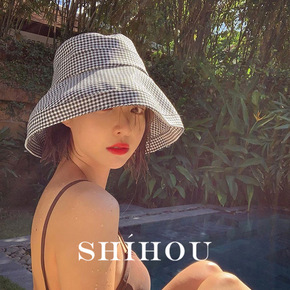 盆帽 男女士格子渔夫帽 户外旅游遮阳帽子 春夏天碎...