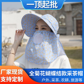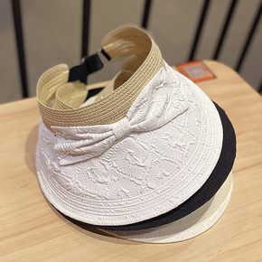 夏防晒C位夏季黑胶蝴蝶结遮阳帽女 防晒紫外线大檐遮...
