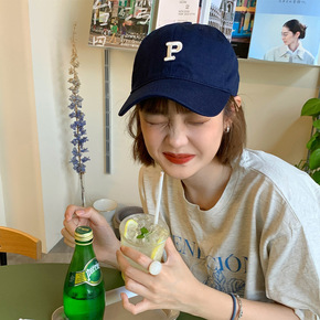 棒球帽女字母P韩版可爱显脸小遮阳百搭时尚俏皮纯棉鸭...