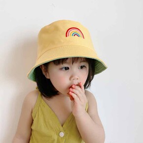 彩虹儿童盆帽儿童帽子2020春夏平顶童帽 双面可戴...