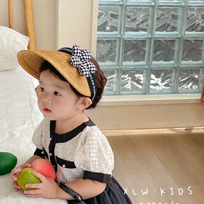 儿童女宝宝帽子薄款女童夏季空顶帽大帽檐太阳遮阳防晒...