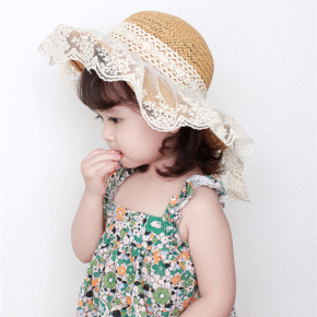 宝宝防晒草帽春夏秋季女童韩版蕾丝蝴蝶结大檐公主遮阳...