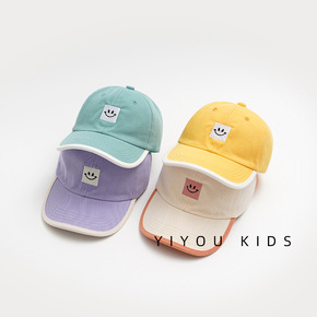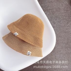 韩国儿童草帽夏季透气笑脸标男孩女孩遮阳水桶帽纯色渔...